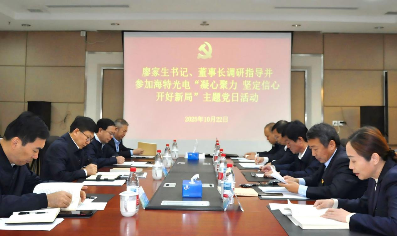 廖家生對兩家企業下一步工作提出具體要求:一是堅持高標準高目標引領,聚焦新材料和大健康產業,保持戰略定力,在完成“十四五”收官基礎上,扎實謀劃好公司“十五五”。二是加大科技創新力度,充分運用AI技術,積極引進優秀科技人才,深化產學研合作,不斷培育新質生產力。三是狠抓市場開拓,加強市場開發人才隊伍建設,健全考核激勵機制,千方百計擴大市場規模。四是抓實精益管理,持續開展數智化應用,優化產品工藝流程,嚴把產品質量安全關,深挖提質增效潛力。五是緊盯目標任務,以“時不我待、只爭朝夕”的緊迫感抓好各項生產經營工作,全力以赴完成年度目標。六是強化黨建引領,深入學習領會習近平生態文明思想,第一時間抓好黨的二十屆四中全會精神學習宣傳貫徹,加強“三基”建設,抓好黨業融合,鞏固拓展學習教育成果,護航企業高質量發展。 調研期間,廖家生還參加了海特光電公司“凝心聚力、堅定信心、開好新局”主題黨日活動。與會人員再次共同學習了《習近平生態文明文選》第一卷有關內容。部分黨員代表立足本職崗位,圍繞“怎么看、怎么辦、怎么干”作了交流發言。