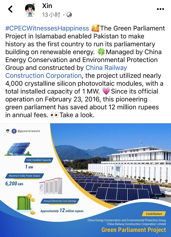國資小新:Facebook報道中國節能援巴基斯坦項目情況