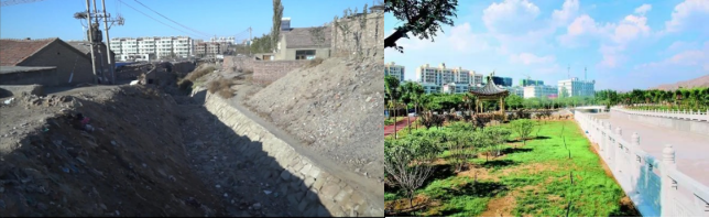 左1十五里河流域綜合治理項(xiàng)目分布圖 右1十五里河流域治理后