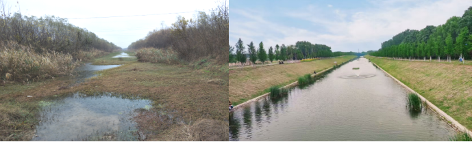 左1界首城區(qū)黑臭水體治理前 右1界首城區(qū)黑臭水體治理后