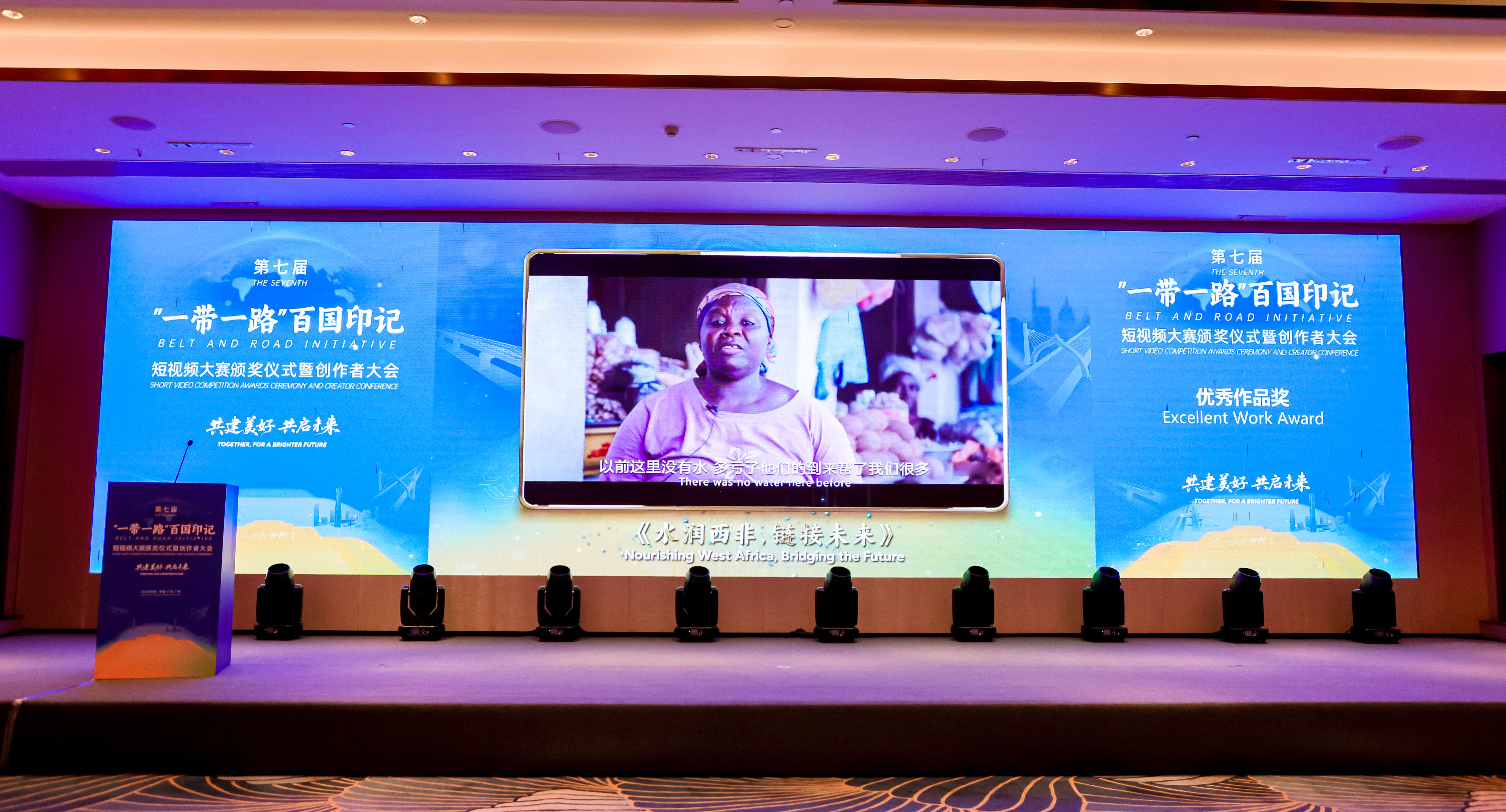 大會頒獎現(xiàn)場 《水潤西非 鏈接未來》以中國地質(zhì)在科特迪瓦實施民生供水工程,惠及當?shù)匕傩諡楸尘?,用一幀幀畫面,生動講述了中國地質(zhì)20多年來,先后在科完成2000多眼水井、100多個農(nóng)村供水改善系統(tǒng)工程和多個主要城市供水項目的實踐故事,用鏡頭繪就了一幅跨越山海、民心相通的時代長卷,充分展現(xiàn)了中國地質(zhì)作為“一帶一路”倡議踐行者和人類命運共同體理念建設(shè)者的生動形象。 第七屆“一帶一路”百國印記短視頻大賽以“共建美好,共啟未來”為主題,由中國公共外交協(xié)會、環(huán)球網(wǎng)聯(lián)合主辦,國務(wù)院國資委新聞中心等單位協(xié)辦,共征集全球130余個國家和地區(qū)的2000部作品。經(jīng)過組委會初篩,大眾票選、專家評審等多輪角逐,最終161部作品脫穎而出。據(jù)統(tǒng)計,大賽作品全球總播放量累計突破17億,其中海外播放量達2億。此次公司獲此殊榮,進一步提升了“中國地質(zhì)”品牌在國內(nèi)外的影響力,為公司樹立了良好的國際形象。